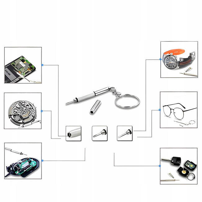 Breloczek Śrubokręt to idealne narzędzie dla każdego, kto ceni sobie praktyczność i wygodę. Dzięki swojemu kompaktowemu rozmiarowi i funkcjonalnemu designowi, świetnie sprawdzi się jako śrubokręt do okularów, zegarków oraz innych małych śrub i nakrętek.