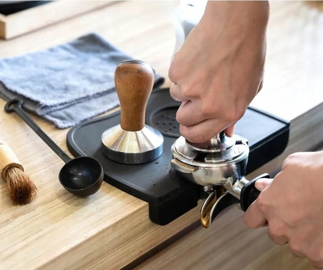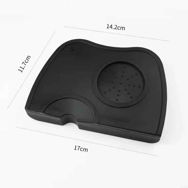 Mata tampingowa to funkcjonalne akcesorium dla każdego miłośnika kawy, który ceni sobie wygodę i porządek podczas przygotowywania kawy. Wykonana z wysokiej jakości silikonu, doskonale przylega do blatu, zapewniając stabilność i bezpieczeństwo w trakcie ubijania kawy. Wycięcie na kolbę umożliwia jej wygodne oparcie, a specjalnie zaprojektowane wytłoczenie na tamper pozwala trzymać go zawsze pod ręką. Dzięki kompaktowym wymiarom mata sprawdzi się zarówno w warunkach domowych, jak i w profesjonalnej kawiarni, chroniąc blat przed zarysowaniami i zabrudzeniami. To niezastąpione narzędzie w codziennej pracy baristy.