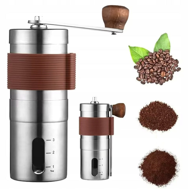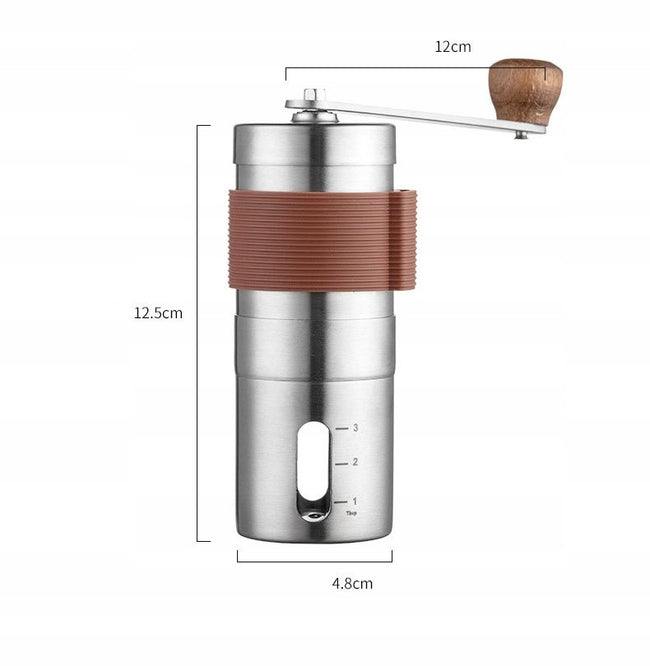 Ręczny młynek do kawy to połączenie elegancji, funkcjonalności i niezawodności. Wykonany z wysokiej jakości stali nierdzewnej i wyposażony w trwałe ceramiczne żarno, pozwala cieszyć się pełnią smaku i aromatu świeżo mielonych ziaren.