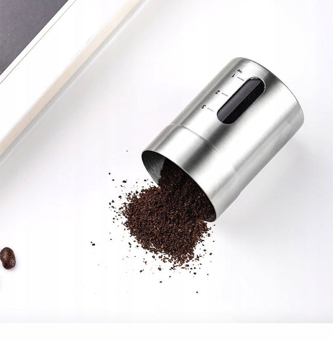 - Elegancki design - metalowy zbiornik z okienkiem i ergonomiczna korbka z drewnianym pokrętłem