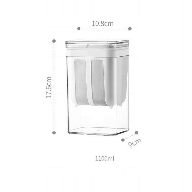 - Duża pojemność: 1100 ml (możliwość filtracji ok. 450 ml jogurtu)