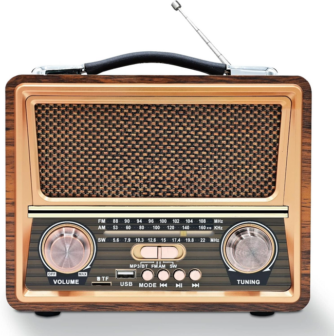 Radio w stylu retro to idealne połączenie klasycznego wyglądu z nowoczesną funkcjonalnością. Dzięki łączności Bluetooth 5.0 możesz bezprzewodowo odtwarzać muzykę z telefonu lub laptopa, a zasięg aż do 25 metrów zapewnia swobodę ruchu. Jeśli wolisz własne pliki, skorzystasz z gniazda USB lub czytnika kart microSD. Radio odbiera fale FM, AM i SW, oferując szeroki wybór stacji. Dzięki wbudowanemu akumulatorowi 1200 mAh oraz dodatkowej przestrzeni na drugą baterię, urządzenie doskonale sprawdzi się w podróży, na grillu czy w lesie. Obudowa z drewnopodobnym wykończeniem, miedziane pokrętła i pleciona maskownica czynią z niego nie tylko sprzęt audio, ale też ozdobę wnętrza.
