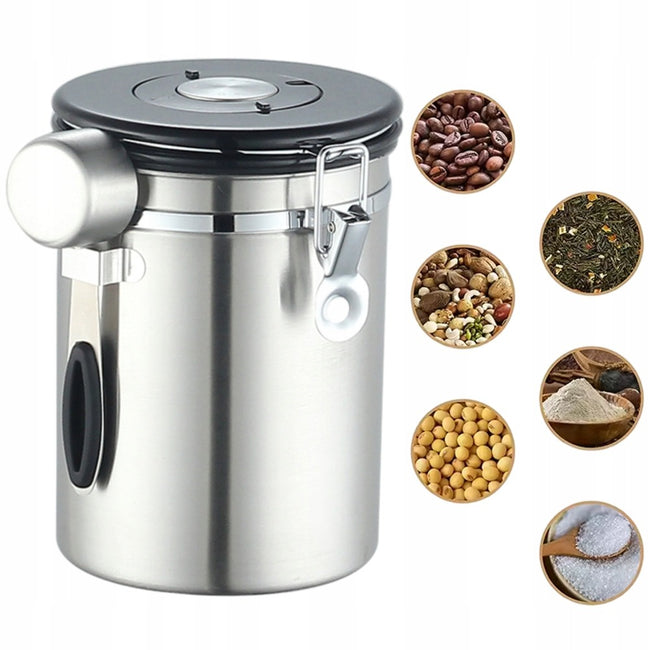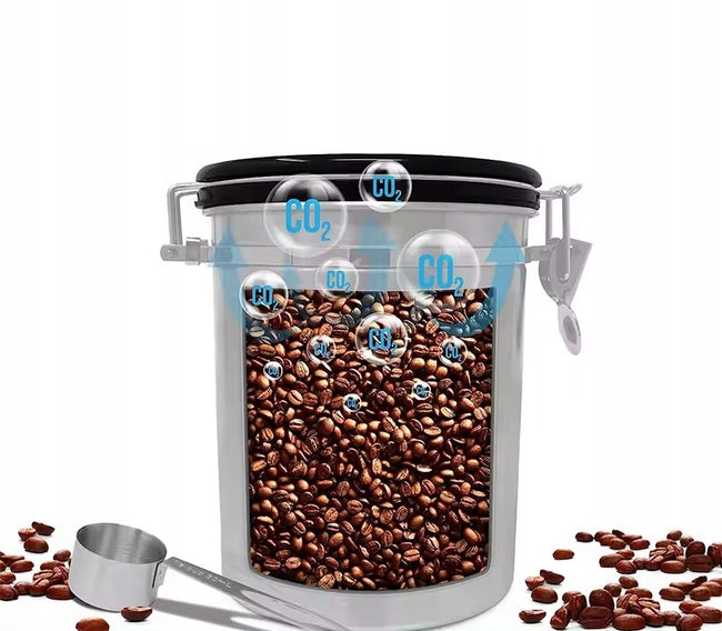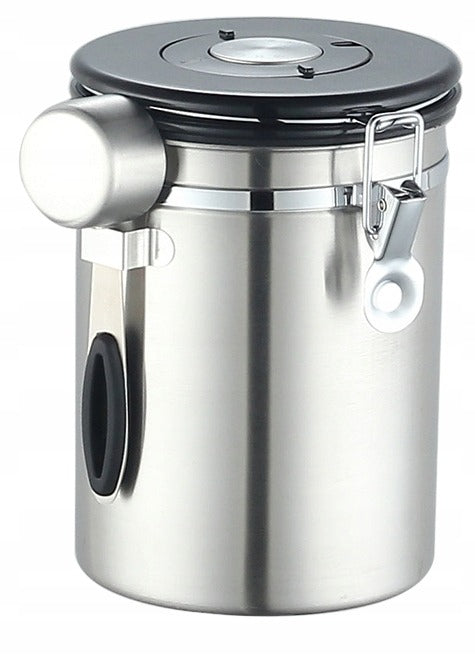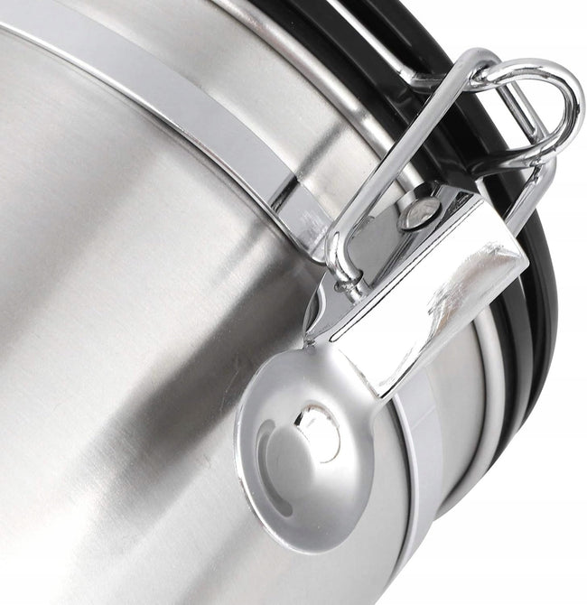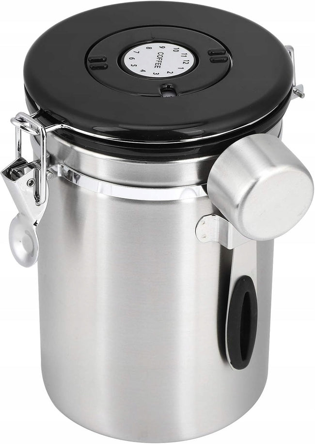 Hermetyczna puszka na kawę z klipsem to elegancki i praktyczny pojemnik, który pozwoli zachować świeżość oraz intensywny aromat ziaren na dłużej. Wykonana z wysokiej jakości stali nierdzewnej i wyposażona w silikonową uszczelkę, gwarantuje doskonałą szczelność, chroniąc zawartość przed działaniem powietrza, wilgoci i światła. Unikalny zawór w pokrywce uwalnia naturalnie wydzielany przez kawę dwutlenek węgla, jednocześnie blokując dostęp tlenu, co znacząco wydłuża jej świeżość. Wbudowany datownik pozwala łatwo kontrolować czas przechowywania, a dołączona miarka ze stali nierdzewnej umożliwia precyzyjne odmierzanie porcji. Puszka o pojemności 1,8L sprawdzi się nie tylko do kawy, ale także do przechowywania herbaty, cukru, kakao czy płatków, a jej elegancki wygląd będzie ozdobą każdej kuchni.