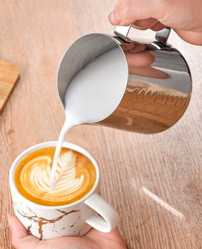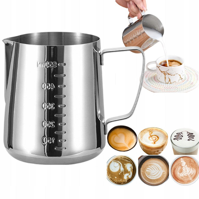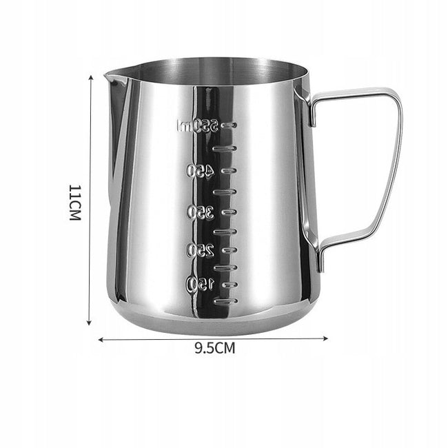 Dzbanek do mleka o pojemności 550ml to praktyczny i stylowy element wyposażenia każdej kuchni czy kawiarni. Wykonany z wysokiej jakości stali nierdzewnej w klasycznym srebrnym kolorze, jest trwały, odporny na uszkodzenia i łatwy w utrzymaniu czystości. Wewnątrz dzbanuszka znajduje się wytłoczona miarka co 50 ml, która umożliwia precyzyjne odmierzenie mleka lub śmietanki do kawy, herbaty lub innych napojów.