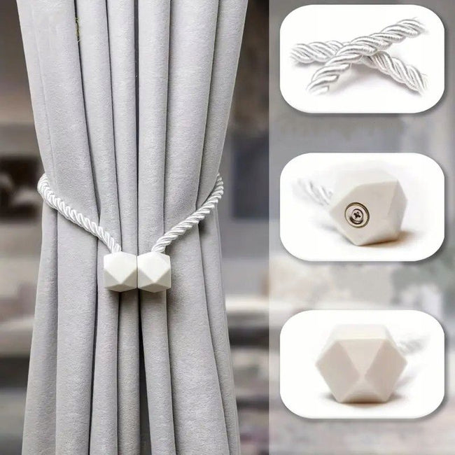 Upięcie Do Zasłon, Firan - Magnetyczne Geometryczne Wzory - Biały - 2 szt.