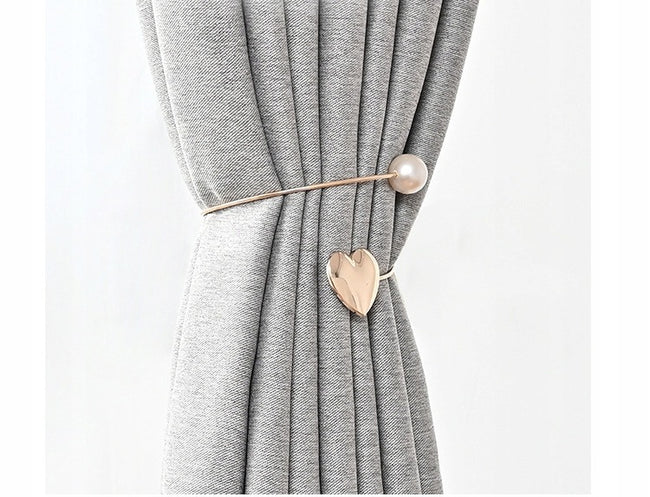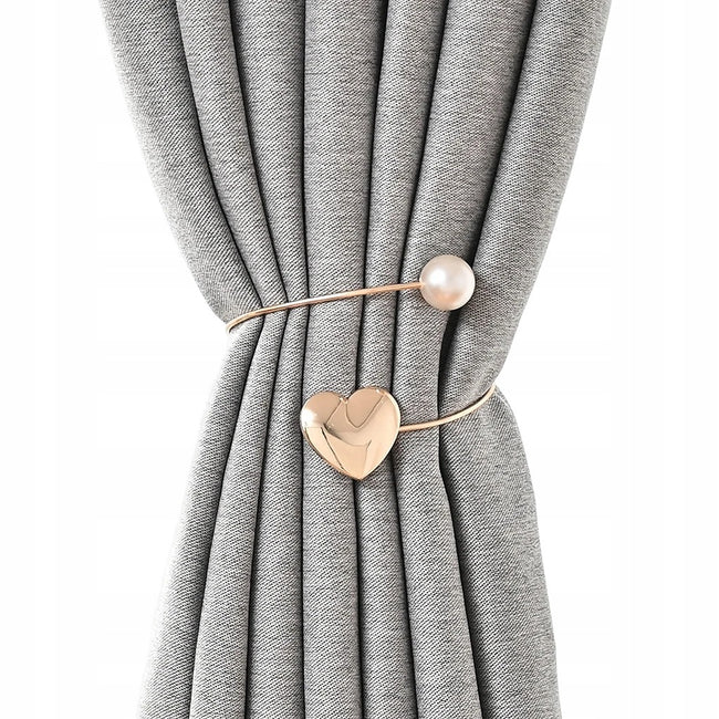 Klamra zdobiona złotym sercem i perłą, to stylowy i funkcjonalny dodatek, idealny do upięcia firan, zasłon i makaronów.