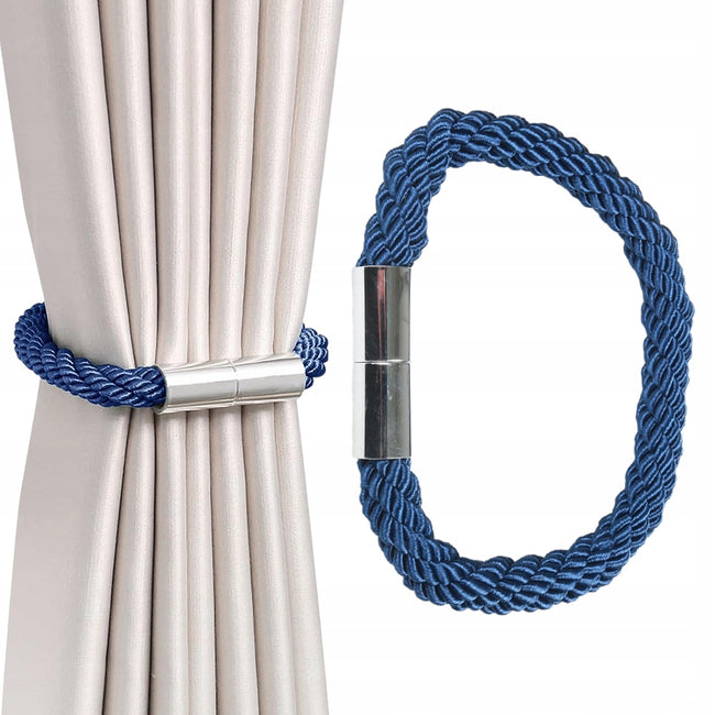 Upięcie Magnetyczne do Zasłon, Firan - Sznur Plecionka Boho (1szt.) - Niebieski