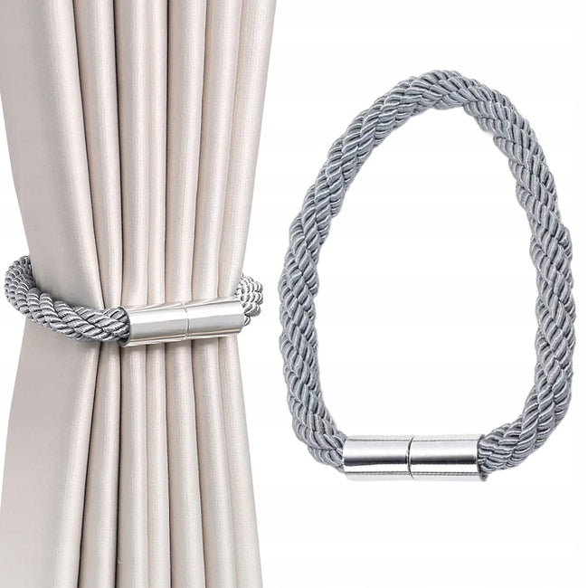 Upięcie Magnetyczne do Zasłon, Firan - Sznur Plecionka Boho (1szt.) - Szary