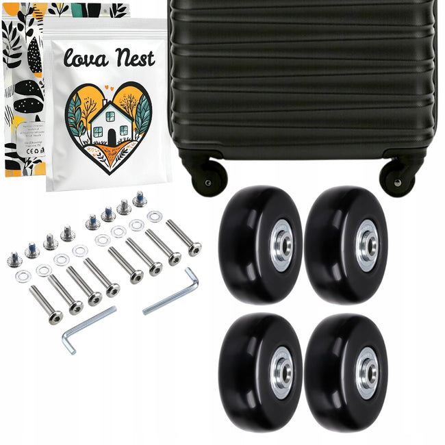 Dzięki uniwersalnym wymiarom (około 50×18 mm) kółka pasują do większości modeli walizek dostępnych na rynku. Zestaw zawiera wszystkie niezbędne akcesoria montażowe - koła, śruby, podkładki i klucze, co sprawia, że wymiana jest szybka i wygodna. Elementy można łatwo czyścić i konserwować, co pozwala utrzymać bagaż w dobrym stanie przez długi czas. To niezawodny zestaw dla każdego, kto ceni sobie funkcjonalność, estetykę i trwałość.