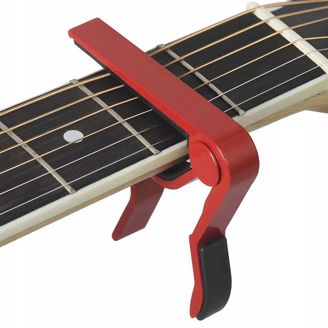 - Kompaktowy i przenośny: Niewielki rozmiar i wygodna konstrukcja sprawiają, że kapodaster jest łatwy do przenoszenia i używania w każdej sytuacji.