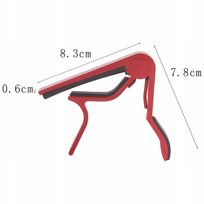 - Kompaktowy i przenośny: Niewielki rozmiar i wygodna konstrukcja sprawiają, że kapodaster jest łatwy do przenoszenia i używania w każdej sytuacji.
