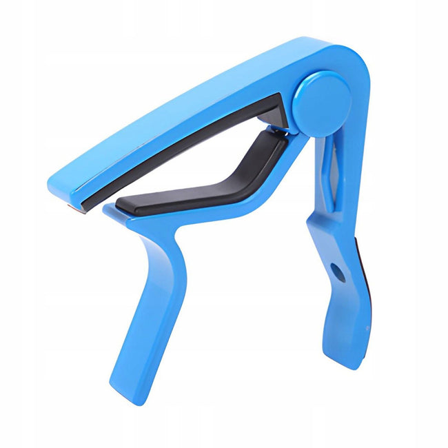 Kapodaster do Gitary Elektrycznej i Akustycznej – Niebieski. Kompaktowy i wytrzymały kapodaster, idealny do gitar elektrycznych i akustycznych. Dzięki sprężynowemu zaciskowi, szybko zmienisz pozycję na gryfie, a silikonowa wyściółka chroni Twój instrument przed uszkodzeniami.