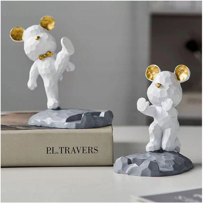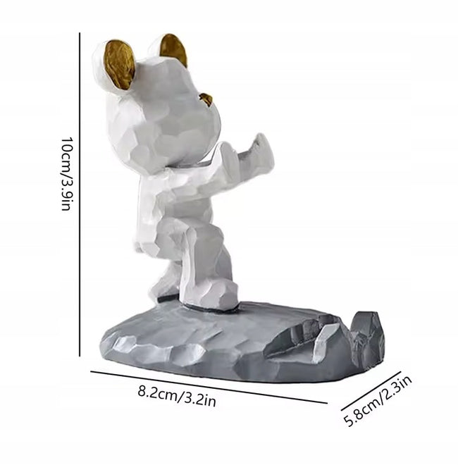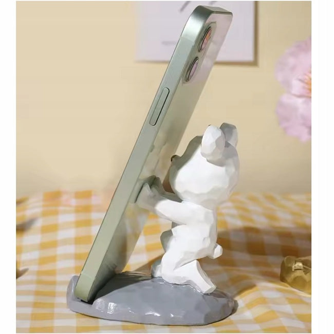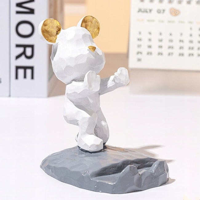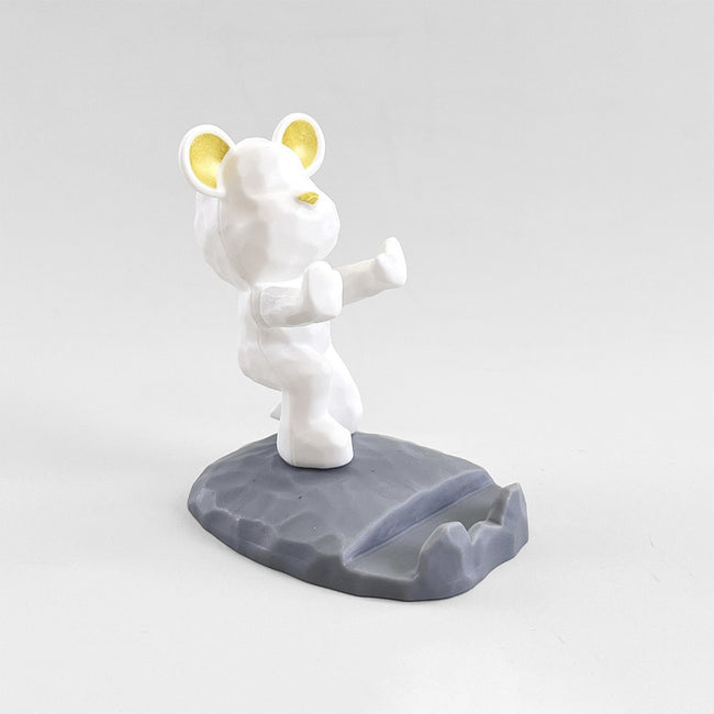 Ten kreatywny stojak na telefon w kształcie słodkiego misia pełni funkcję zarówno dekoracyjną, jak i praktyczną. Wykonany z tworzywa sztucznego, oferuje wyrazisty efekt trójwymiarowy oraz trwałość. Stabilna trójkątna konstrukcja z dużą podstawą zapewnia pewne oparcie bez ryzyka przechylania się.