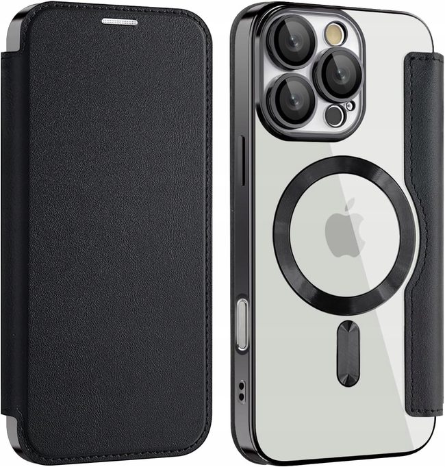 Etui Phoneo Flip z Klapką RFID do MagSafe do iPhone 16 Pro Max - Czarne