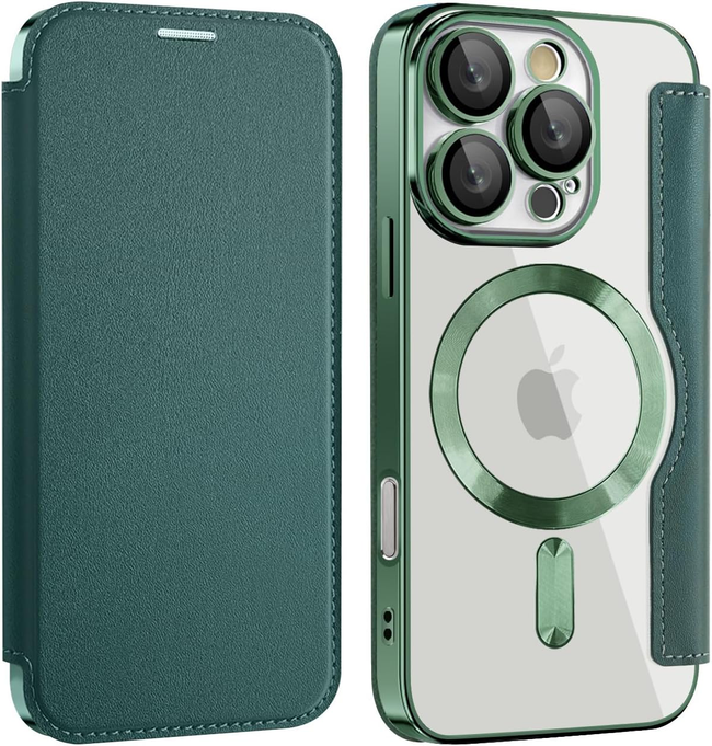 Etui Phoneo Flip z Klapką RFID do MagSafe do iPhone 16 Pro Max - Zielone