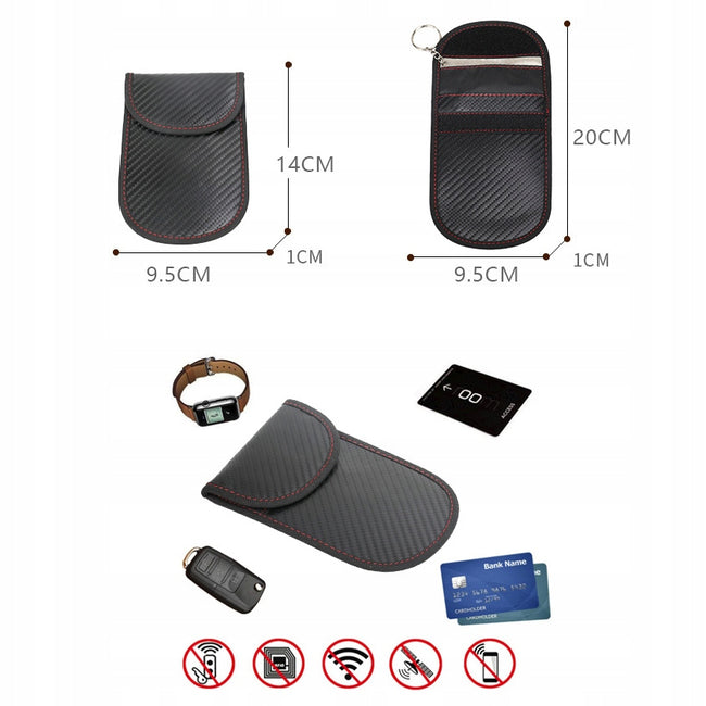Sygnał blokowany jest przez specjalnie opracowany materiał. Gruba warstwa materiału oraz wielowarstwowe szycie gwarantuje skuteczne blokowanie sygnału. Kompaktowy rozmiar jest idealny, zmieści się do większości kieszeni spodni. Zamontowany w środku łańcuszek pozwala na przymocowanie do paska, kluczy, etc.
