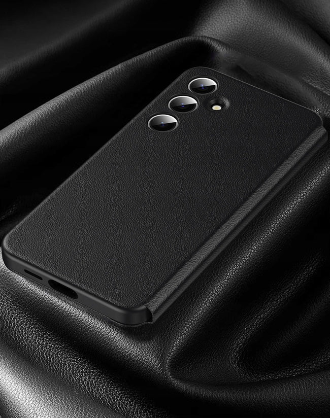 Etui z klapką Smart View to połączenie elegancji, funkcjonalności i niezawodnej ochrony Twojego smartfona. Wykonane z wysokiej jakości skóry ekologicznej, doskonale dopasowuje się do telefonu, skutecznie chroniąc go przed codziennymi uszkodzeniami. Klapka typu Smart View wyposażona jest w inteligentne okienko, które umożliwia szybki podgląd najważniejszych informacji – godziny, daty, pogody czy stanu baterii – bez konieczności otwierania etui.