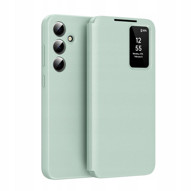 Etui z klapką Smart View to połączenie elegancji, funkcjonalności i niezawodnej ochrony Twojego smartfona. Wykonane z wysokiej jakości skóry ekologicznej, doskonale dopasowuje się do telefonu, skutecznie chroniąc go przed codziennymi uszkodzeniami. Klapka typu Smart View wyposażona jest w inteligentne okienko, które umożliwia szybki podgląd najważniejszych informacji – godziny, daty, pogody czy stanu baterii – bez konieczności otwierania etui.