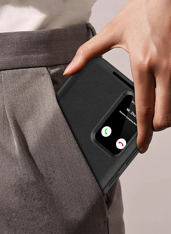Etui z klapką Smart View to połączenie elegancji, funkcjonalności i niezawodnej ochrony Twojego smartfona. Wykonane z wysokiej jakości skóry ekologicznej, doskonale dopasowuje się do telefonu, skutecznie chroniąc go przed codziennymi uszkodzeniami. Klapka typu Smart View wyposażona jest w inteligentne okienko, które umożliwia szybki podgląd najważniejszych informacji – godziny, daty, pogody czy stanu baterii – bez konieczności otwierania etui.