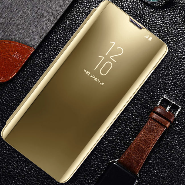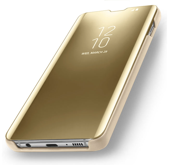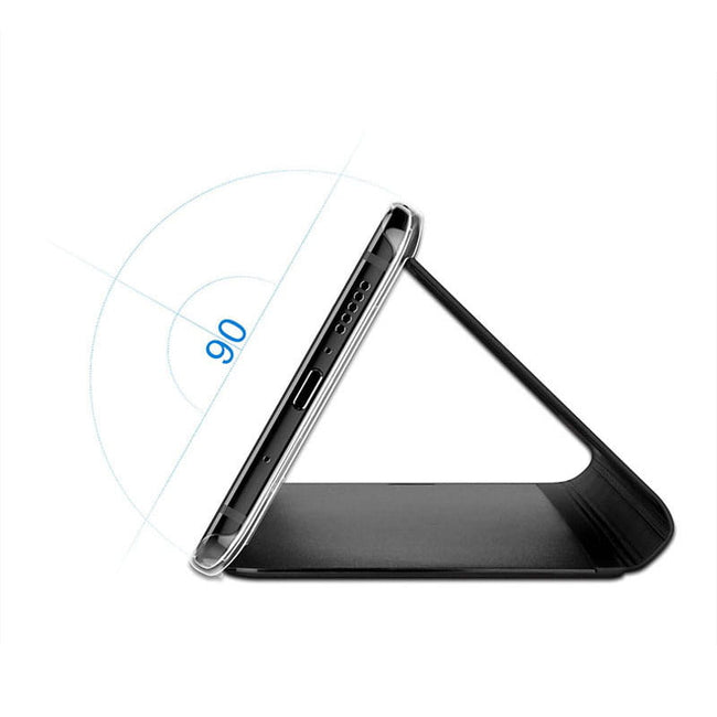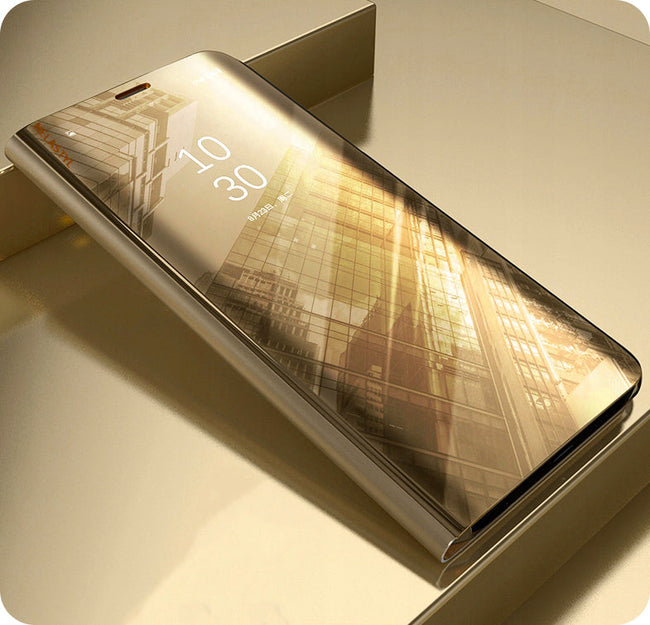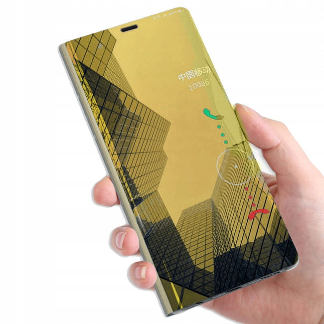 Przednia klapka wykonana jest z lustrzanego, półprzezroczystego tworzywa, pozwalającego na podejrzenie godziny bez otwierania etui. Tył etui wykonany jest z najwyższej jakości miękkiego, matowego materiału, który doskonale leży w dłoni i jest przyjemny w dotyku. Wycięcie na aparat chroni obiektyw przed uszkodzeniem w trakcie użytkowania smartfona.