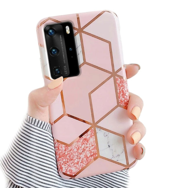 Etui Marble Gold Case - Huawei P40 - Różowy