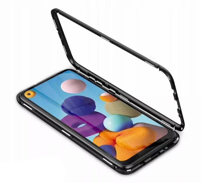 Etui składa się z 3 elementów. Szkła hartowanego o grubości aż 0,7mm - ponad 2 razy grubszego niż standardowe szkło ochronne na ekran telefonu! Oraz dwóch części aluminiowych połączonych ze sobą silnymi nagnesami neodymowymi!