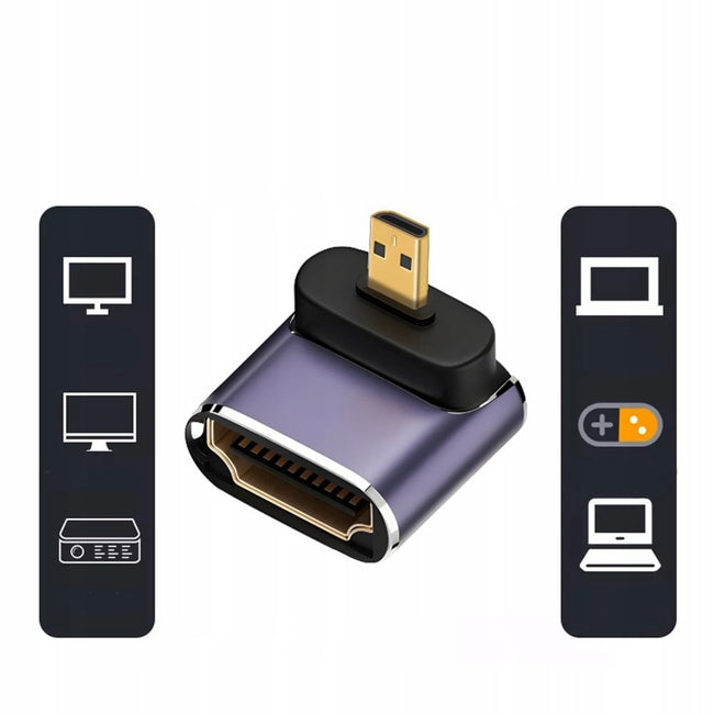 Adapter obsługuje sygnały HDMI z urządzeń takich jak TV Box, TV Stick, odtwarzacz Blu-Ray, komputer PC, monitor, projektor i inne. Obsługuje rozdzielczości do 7680x4320 przy prędkości transmisji danych 48 Gb/s, zapewniając niesamowicie ostry obraz. Wykonany ze stopu aluminium, zapewniając trwałość i odporność na uszkodzenia. Złącze pozłacane dla lepszej transmisji sygnału i redukcji zakłóceń, zapewniające stabilność i wyraźną jakość obrazu.